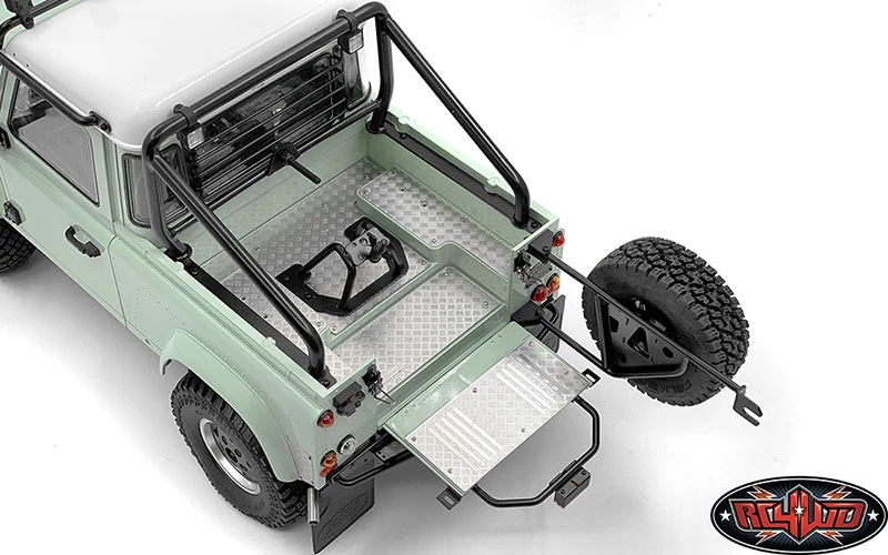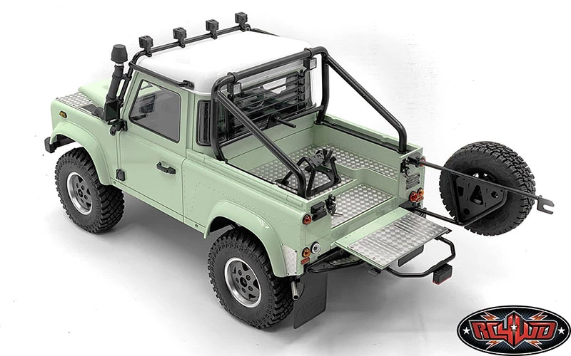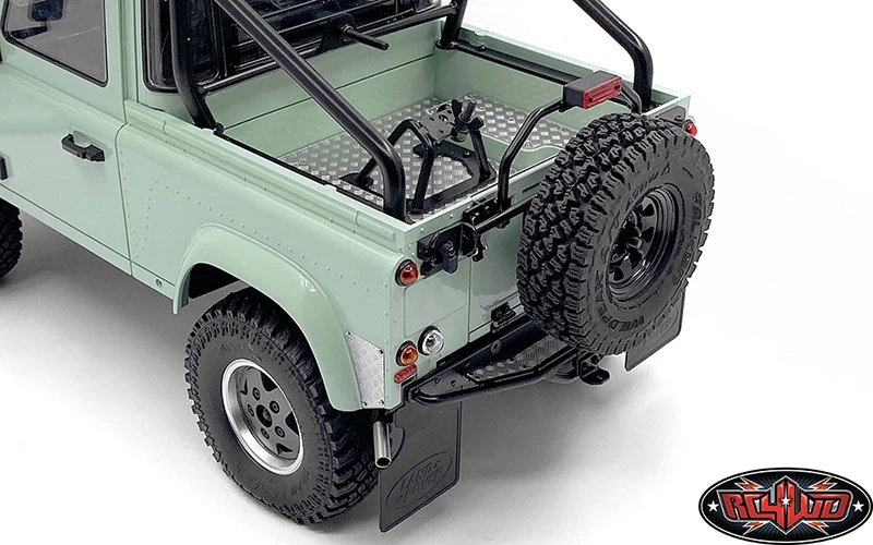 Shown installed on RC4WD Gelande II RTR W/ 2015 Land Rover Defender D90 Body Set (Heritage Edition) (Z-RTR0044) with Steel Front Side Hood Diamond Plates for RC4WD Gelande II 2015 Land Rover Defender D90 (Pick-up/SUV) (VVV-C1085), Simi Snorkel for Gelande II D90/D110 (VVV-C0913), Steel Diamond Tailgate Plate for RC4WD Gelande II 2015 Land Rover Defender D90 (Pick-Up) (VVV-C1087), Steel Tube Rollbar w/ Flood Lights for RC4WD Gelande II 2015 Land Rover Defender D90 (Pick-Up) (VVV-C1089), Front Window Roll Cage w/ Flood Lights for RC4WD Gelande II 2015 Land Rover Defender D90 (Pick-Up) (VVV-C1091), Steel Rear Window Guard for RC4WD Gelande II 2015 Land Rover Defender D90 (Pick-Up) (VVV-C1094), High Brake Light for RC4WD Gelande II 2015 Land Rover Defender D90 (Pick-Up) (VVV-C1095), Steel Rear Bed Diamond Plates for RC4WD Gelande II 2015 Land Rover Defender D90 (Pick-Up) (VVV-C1086), 5 Lug Wagon 1.9″ Steel Stamped Beadlock Wheels (Black) (Z-W0129), RC4WD Falken Wildpeak A/T Trail 1.9″ Scale Tires (Z-T0195), Rear Tube Bumper for Gelande II (D90/D110) (VVV-C0456), 1/10 Land Rover Defender D90 Emblem Set and Land Rover Emblem for Gelande II D90/D110 Body (Black), Land Rover Mud Flaps for Gelande II D90/D110 (Z-S1888), Dome Spoked 1.9″ Classic Beadlock Wheels (VVV-C0810) and RC4WD Atturo Trail Blade X/T 1.9″ Scale Tires (Z-T0154) for example (Not Included)