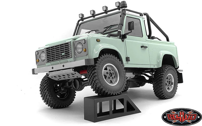 Shown installed on RC4WD Gelande II RTR W/ 2015 Land Rover Defender D90 Body Set (Heritage Edition) (Z-RTR0044) with Front Window Roll Cage w/ Flood Lights for RC4WD Gelande II 2015 Land Rover Defender D90 (Pick-Up) (VVV-C1091), Steel Tube Rollbar for RC4WD Gelande II 2015 Land Rover Defender D90 (Pick-Up) (VVV-C1088), Simi Snorkel for Gelande II D90/D110 (VVV-C0913), Dome Spoked 1.9″ Classic Beadlock Wheels (VVV-C0810), RC4WD Atturo Trail Blade X/T 1.9″ Scale Tires (Z-T0154) and Black Offroad Obstacle for example (Not Included)