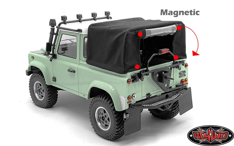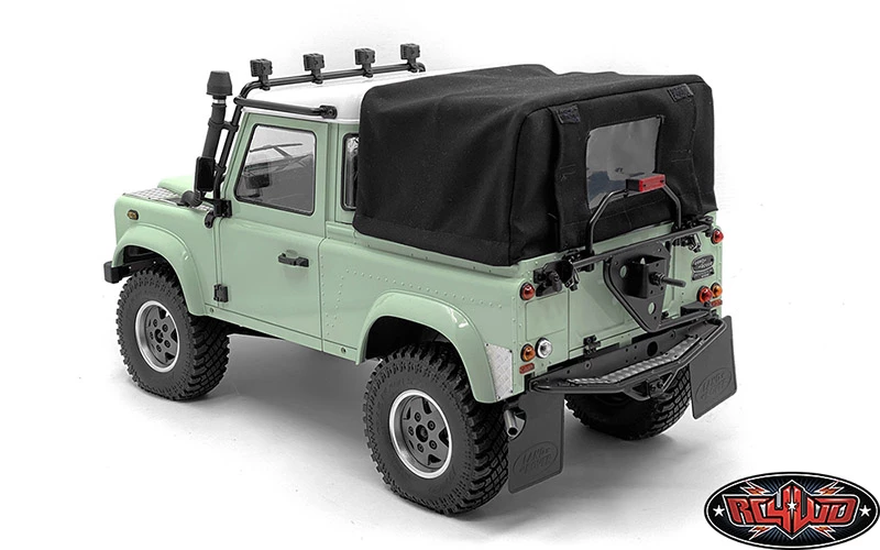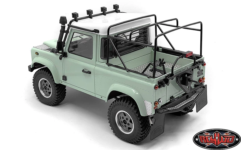 Shown installed on RC4WD Gelande II RTR W/ 2015 Land Rover Defender D90 Body Set (Heritage Edition) (Z-RTR0044) with Front Window Roll Cage w/ Flood Lights for RC4WD Gelande II 2015 Land Rover Defender D90 (Pick-Up) (VVV-C1091), Steel Front Side Hood Diamond Plates for RC4WD Gelande II 2015 Land Rover Defender D90 (Pick-up/SUV) (VVV-C1085), Simi Snorkel for Gelande II D90/D110 (VVV-C0913), High Brake Light for RC4WD Gelande II 2015 Land Rover Defender D90 (Pick-Up) (VVV-C1095), Bed Mounted Spare Wheel and Tire Holder for RC4WD Gelande II 2015 Land Rover Defender D90 (Pick-Up) (VVV-C1096), Spare Wheel and Tire Holder for RC4WD Gelande II 2015 Land Rover Defender D90 (Pick-up/SUV) (VVV-C1097), Rear Tube Bumper for Gelande II (D90/D110) (VVV-C0456), 1/10 Land Rover Defender D90 Emblem Set and Land Rover Emblem for Gelande II D90/D110 Body (Black), Land Rover Mud Flaps for Gelande II D90/D110 (Z-S1888), Steel Rear Bed Diamond Plates for RC4WD Gelande II 2015 Land Rover Defender D90 (Pick-Up) (VVV-C1086), Dome Spoked 1.9″ Classic Beadlock Wheels (VVV-C0810) and RC4WD Atturo Trail Blade X/T 1.9″ Scale Tires (Z-T0154) for example (Not Included)