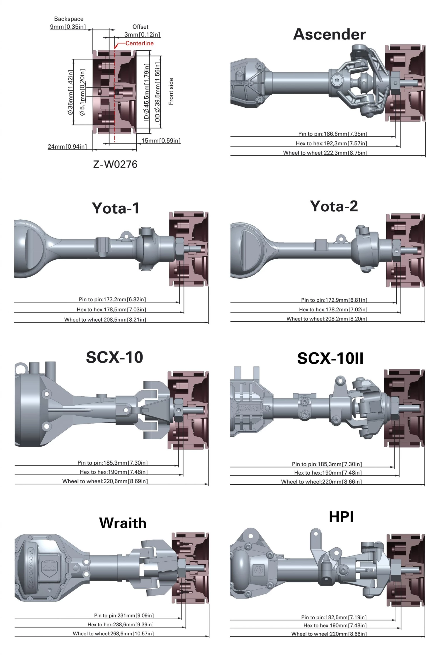 Shown installed on RC4WD Trail Finder 2 “LWB” RTR w/Mojave II Four Door Body Set (Z-RTR0030) with RC4WD Falken Wildpeak A/T3W 1.55 Scale Tires (Z-T0169) and RC4WD 2001 Toyota Tacoma 4 Door Body for TF2 LWB 313MM/12.3″ (Z-B0169) (Shown painted White) for example (Not Included)