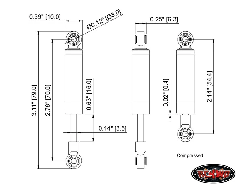 Hole to Hole (Compressed): 2.12in / 53.93mm