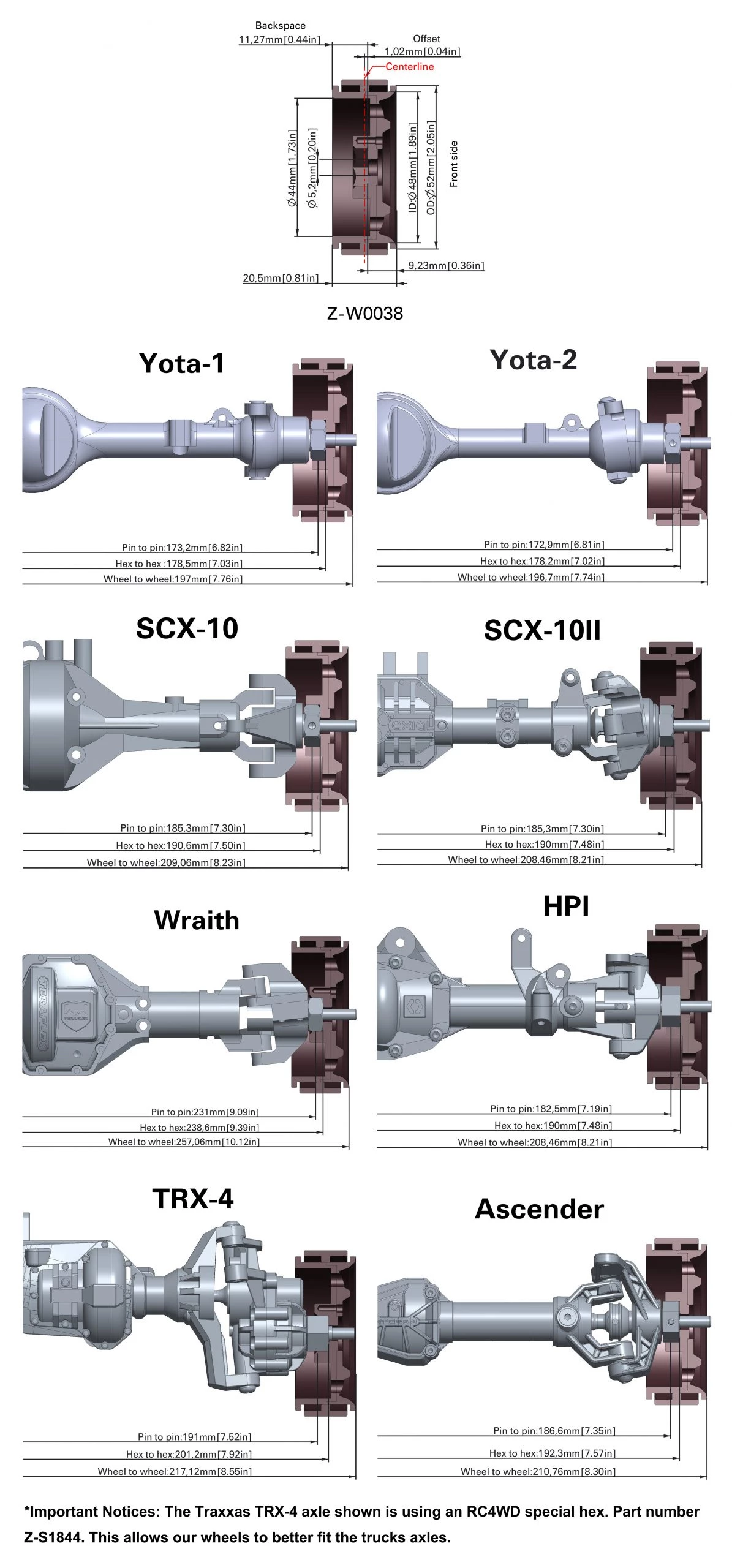 Shown installed with RC4WD Goodyear Wrangler® All-Terrain Adventure 1.9″ Tires (Z-T0170) for example (Not Included)