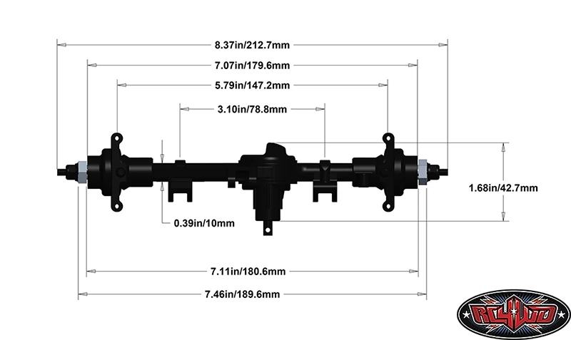 Shown installed on Axial SCX10 II for example (Not Included)