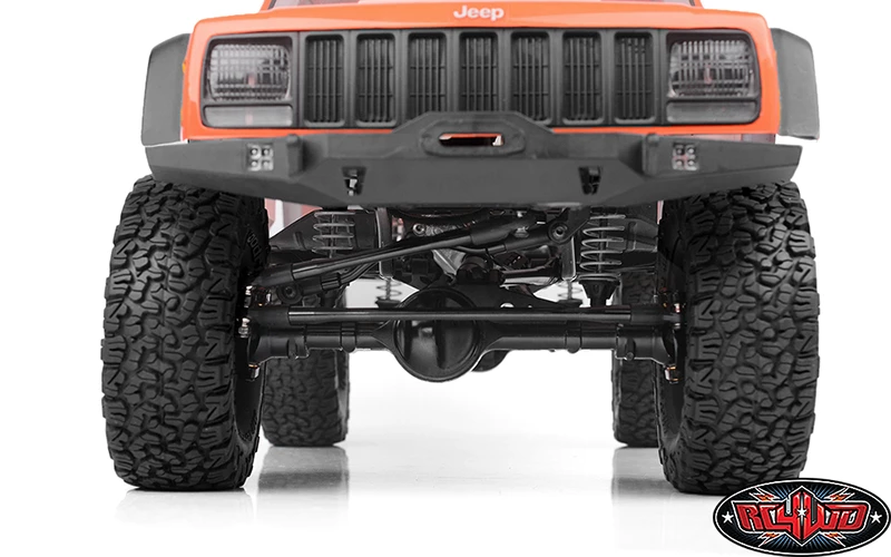 With improved steering and durability, the TEQ Ultimate Scale Axles are a modern version of the Yota II axles designed as an upgrade for Axial SCX10 II and Element Enduro line of RC trucks. These scale axles are cast from a high grade aluminum alloy and come with integrated suspension link mounts that construct a single, hardened unit. Solid and maneuverable, this set features universal style XVD shafts that deliver a tighter turning radius and high strength driveline. The ring and pinion gears are a CNC machined, hypoid tooth design and are linked to a 6 bolt hardened steel locker. The C-hubs feature interlocking grooves on the front axle which enables caster customization and the front pumpkin is offset providing more ground clearance. All of this is packed into a high strength cast aluminum case with a long lasting powder-coated finish. These RC Axles will look awesome on your custom Axial SC10 II or Element Enduro.