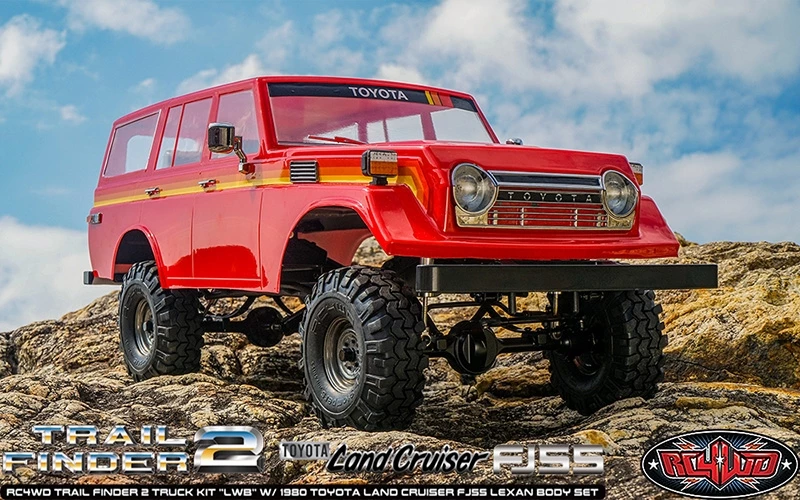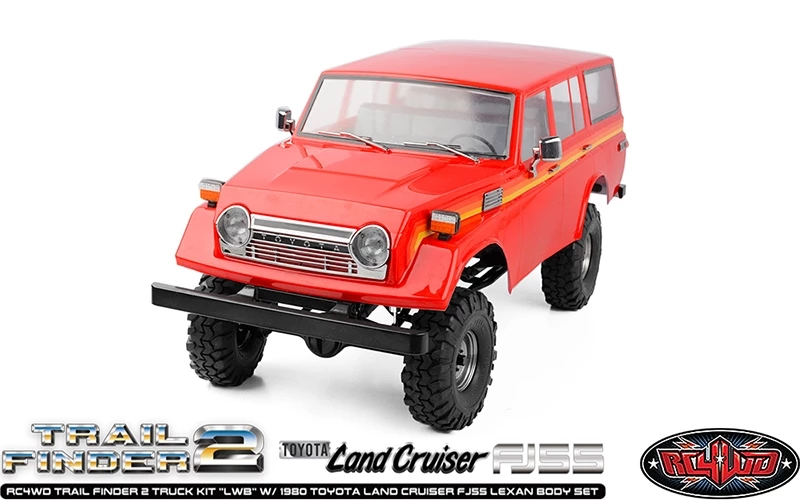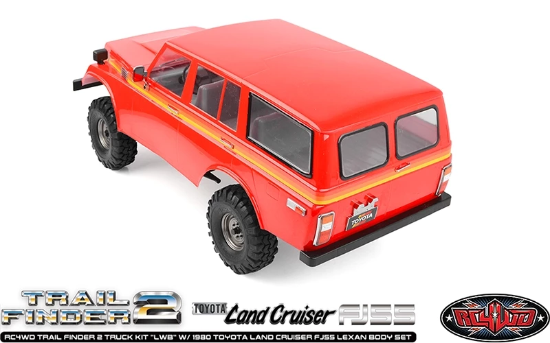 This is the all new Licensed RC4WD Trail Finder 2 Truck Kit “LWB” W/ 1980 Toyota Land Cruiser FJ55 Lexan Body Set. These have been Officially Licensed by Toyota.