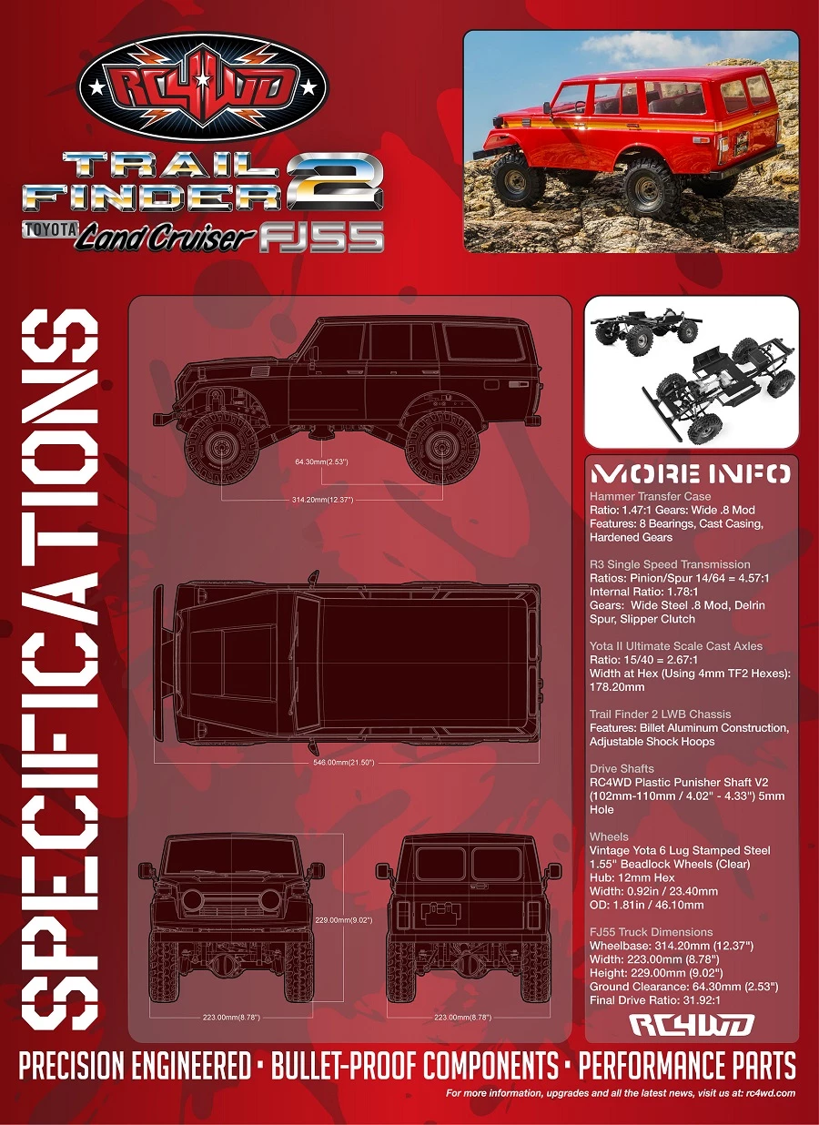 Drawing on the success of the RC4WD MOA gear sets, the TF2 Drivetrain has the most durable gears RC4WD has to offer, so the TF2 will stay on the trail, day after day.