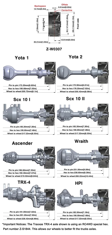 Installing on Traxxas TRX-4 trucks requires the RC4WD 12mm Wheel Hex Conversion for Traxxas TRX-4 (Z-S1844)