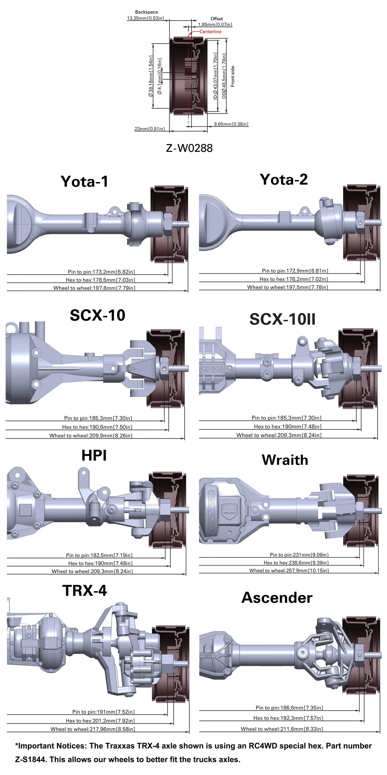 Shown installed with RC4WD Goodyear Wrangler MT/R 1.55″ Scale Tires (Z-T0159) for example (Not Included)