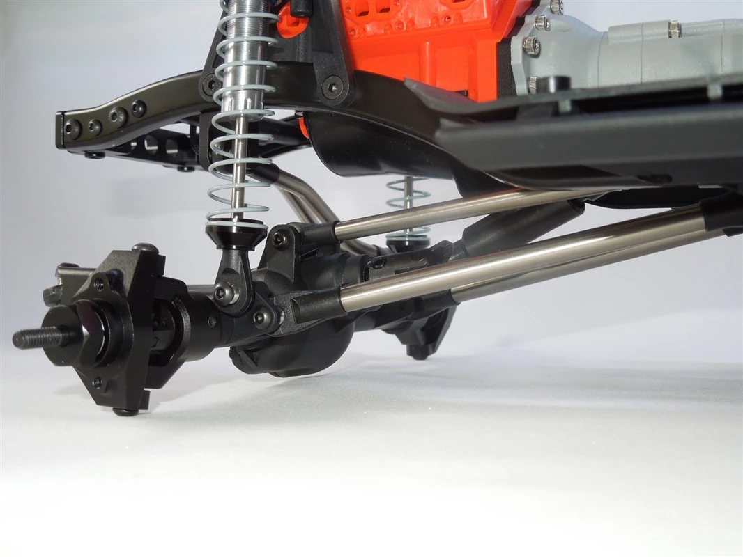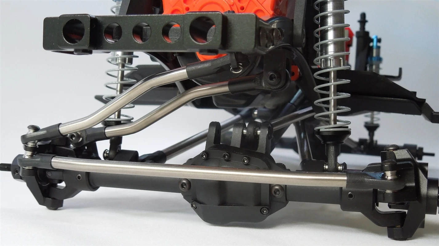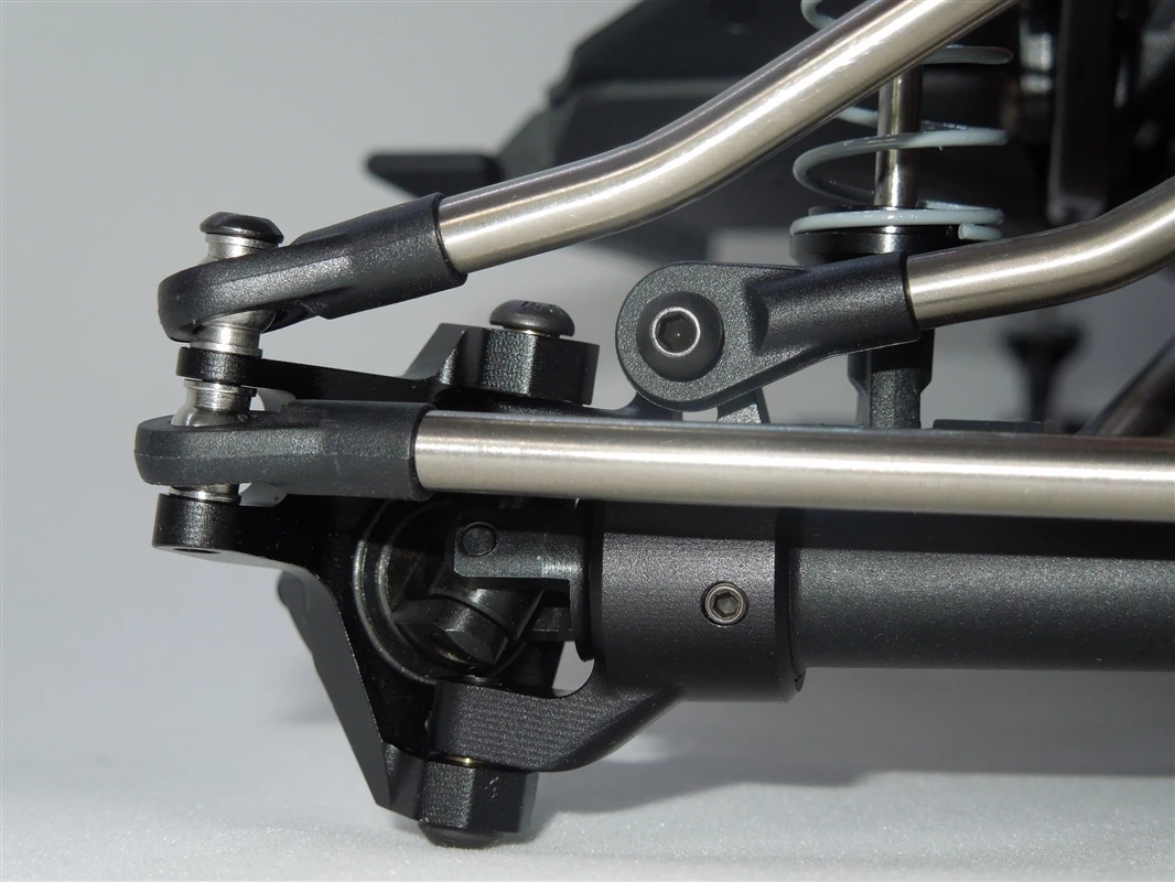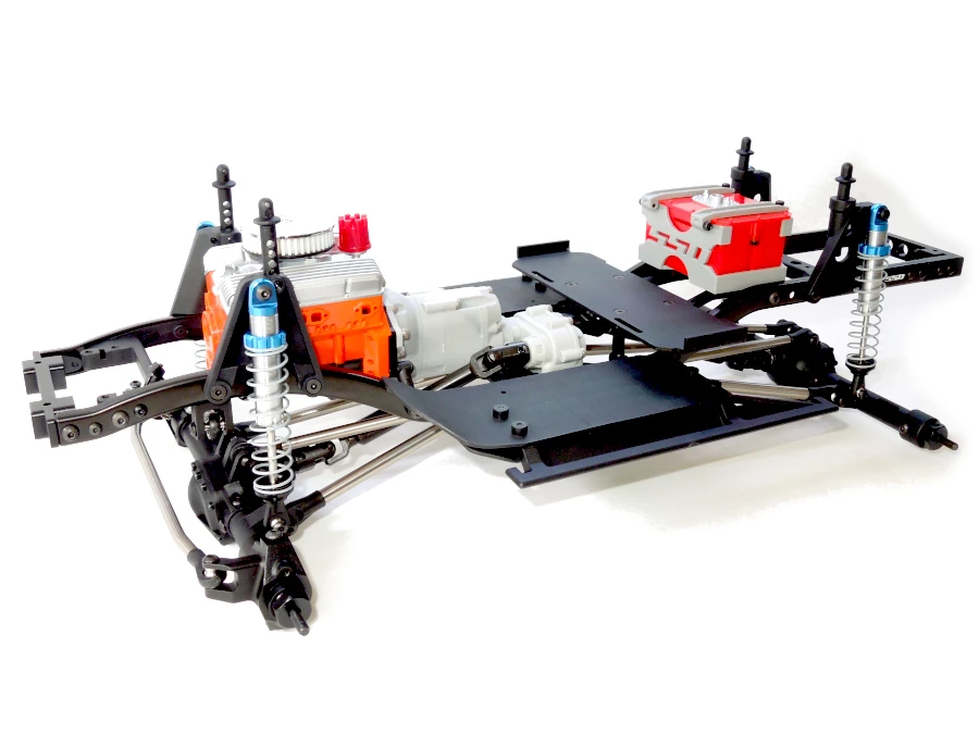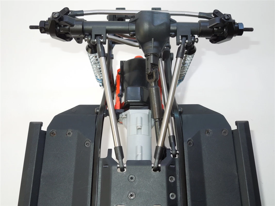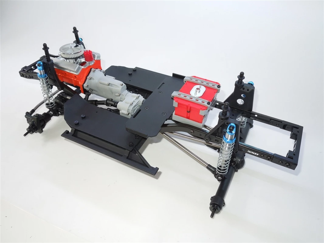 Scale chassis layout with steel C channel frame rails. All titanium links providing a wheelbase of 313mm.