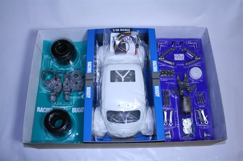 Originally released in 1979, the R/C Sand Scorcher was greatly received from fans around the world with its humorous form and superb mechanism. Keeping true to the basic layout of the original while incorporating many refined parts, this re-released version of the Sand Scorcher will remind you of the original. This model realistically reproduces the unique form of the buggy which was seen at the one-make race at the Baja 1000 in California, USA. The body is molded in white polystyrene and can be painted with Tamiya plastic model paints. The rear-wheel drive 2WD chassis features realistic and aggressive driving performance that will no doubt excite you.