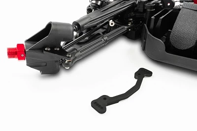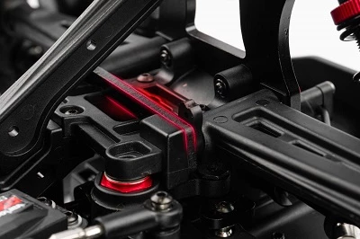 | Aluminum Upper Arm Brace/Servo Saver Support Plate The Jambo utilizes a robust brace made from aluminum alloy to secure the upper hinge pin mounts, while at the same time providing added rigidity to the composite steering servo saver system. | Machined Aluminium Front and Rear Shock Towers The Jambo includes CNC-machined (not stamped!) 6065 Aluminum front and rear shock towers, a race-inspired design normally found in vehicles costing much, much more! The 4mm thick front tower and 5mm rear are optimized for strength, and durability. In addition, there are multiple adjustments available for suspension settings that allow the Shogun to be tuned to any track conditions. |