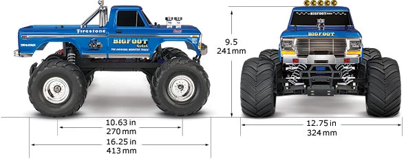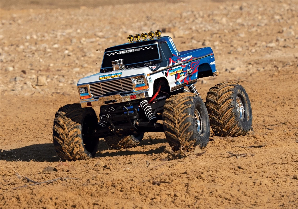 BIGFOOT® is The Original Monster Truck. This is the truck that started the monster truck phenomenon and brought car-crushing fun and excitement to fairgrounds and arenas everywhere. Traxxas faithfully captures the spirit and classic look of BIGFOOT No. 1 in amazing detail with this fully licensed replica. Relive the thrill of your first monster truck event with this classic powerhouse. Hammer the throttle for non-stop wheelies and crush the competition underneath its towering stance. Built Traxxas Tough for all-day fun, BIGFOOT comes out of the box fully assembled, waterproof, and Ready-To-Race®.