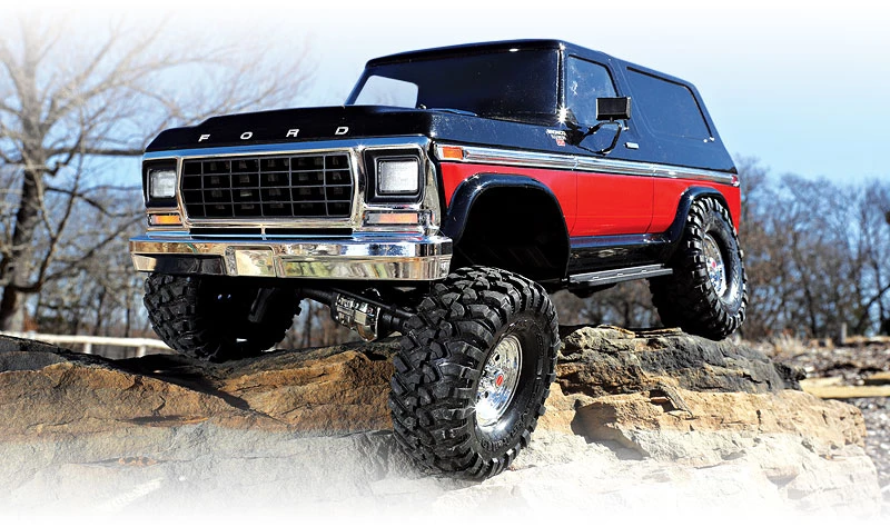 Originally introduced in 1966 as a 4×4 compact SUV, the Ford Bronco matured as a full-size truck in the late 1970s, cementing its status as a rugged off-roader. Traxxas honors the classic 1979 Ford Bronco with this beautifully detailed and faithful reproduction mounted on the incredibly capable TRX-4 chassis. From the chrome wheels and bumpers to the gorgeous Sunset or red graphics, the TRX-4 recaptures the Broncos iconic era with the toughness and technology that could only come from Traxxas.