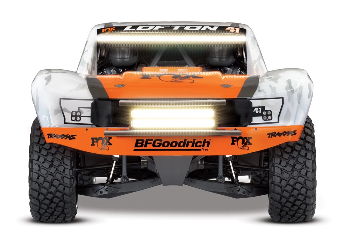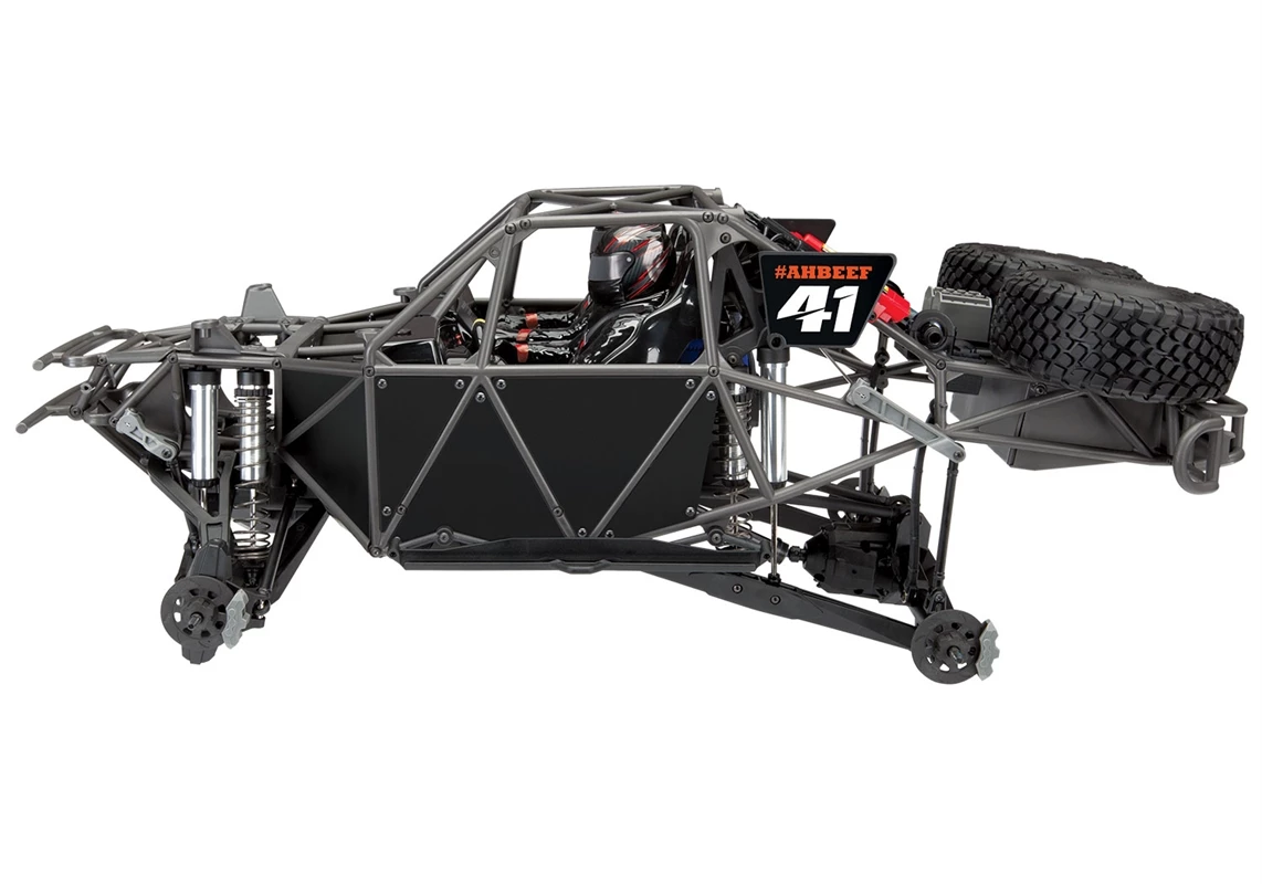 The Traxxas Unlimited Desert Racer is engineered on an authentic, true to scale 4-wheel drive desert race truck chassis. The 4-link solid rear axle design provides huge suspension travel with authentic driving dynamics. From the cantilever sway bars to the 8 GTR shocks, Traxxas has accurately reproduced a true unlimited desert race chassis in both form and function.