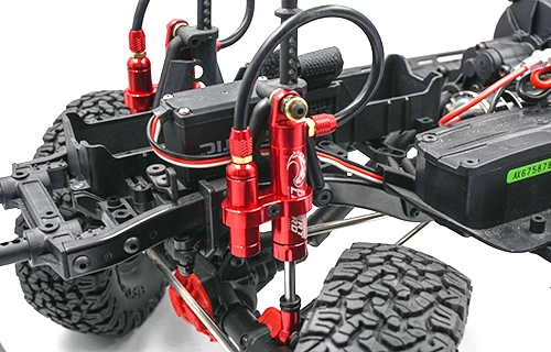 Introducing the Yeah Racing Desert Lizard Piggyback Internal Spring Scale shocks for crawlers, comes pre-assembled for easy upgrading your current rig! Included are springs for you to Featuring a double O-Ring sealing cartridge which prolongs the lifespan of the o-rings inside the shock. In this version of piggyback shock, the compression and rebound is further controlled by the piggyback. Hardware required to install these shocks onto the crawler is included